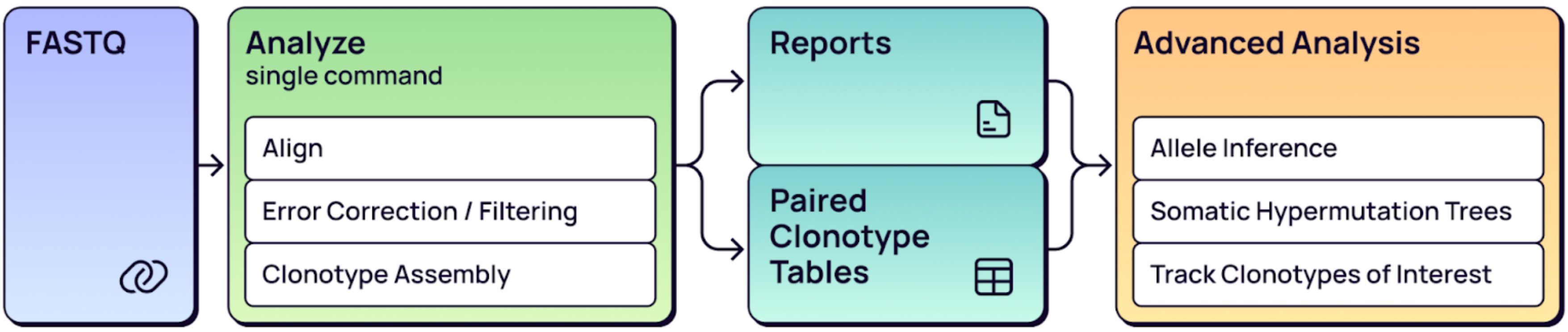 MiXCR is the leading software for immune repertoire analysis, trusted by 47 of the top 50 research institutions and 8 of the top 10 biopharma companies, thanks to its ease of use, comprehensive features, exceptional speed, and high accuracy. It has been used to analyze over 10 million samples and is cited in more than 1,700 academic publications.