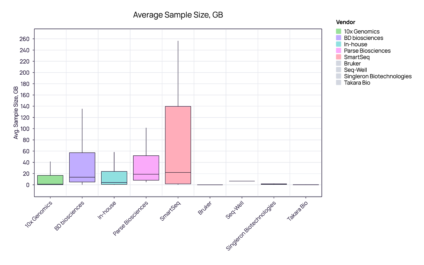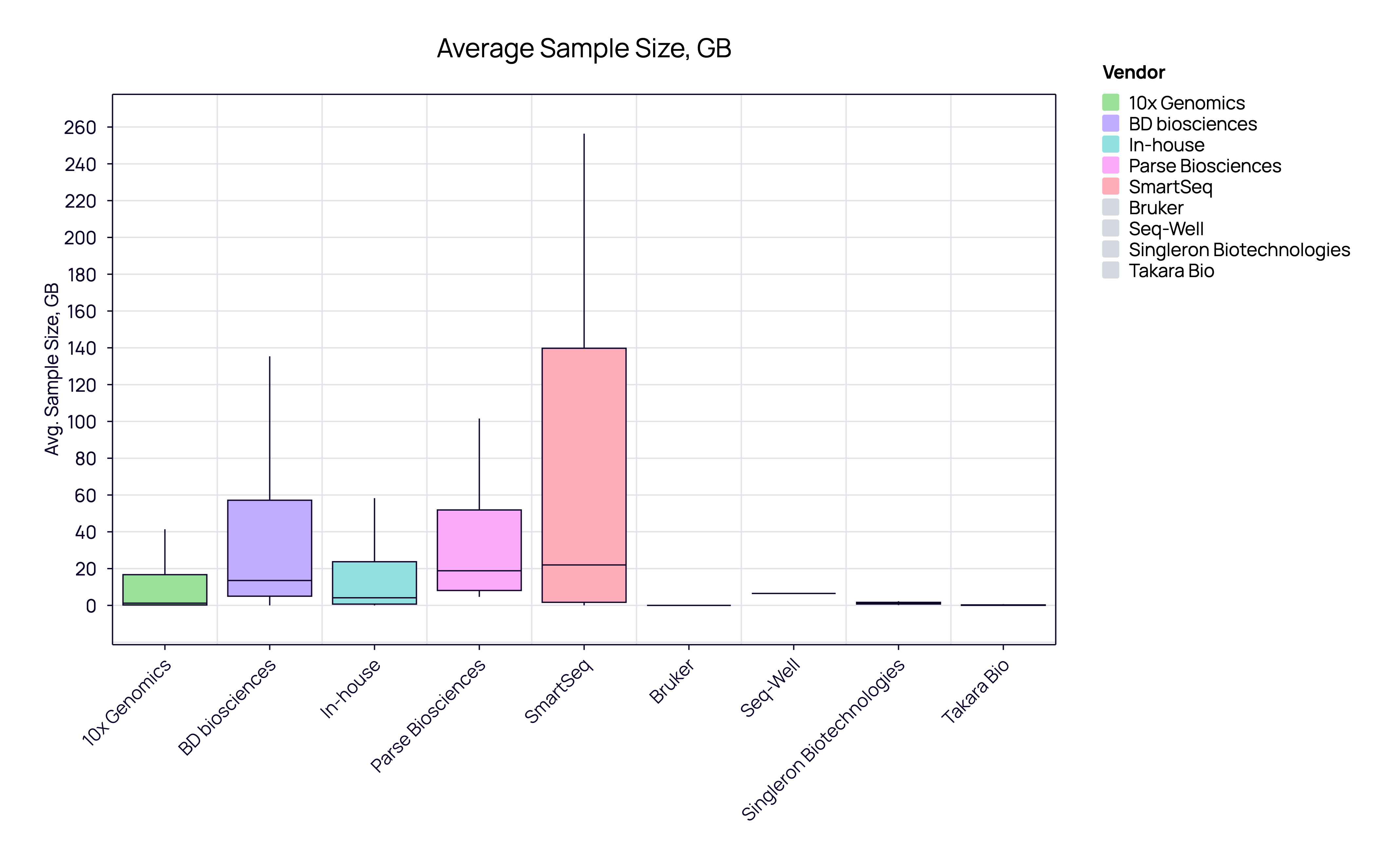 10x Genomics samples typically have a lower, consistent data footprint (median ~2-3 GB), aligning perfectly with industrial requirements for operational efficiency and predictable cloud costs.